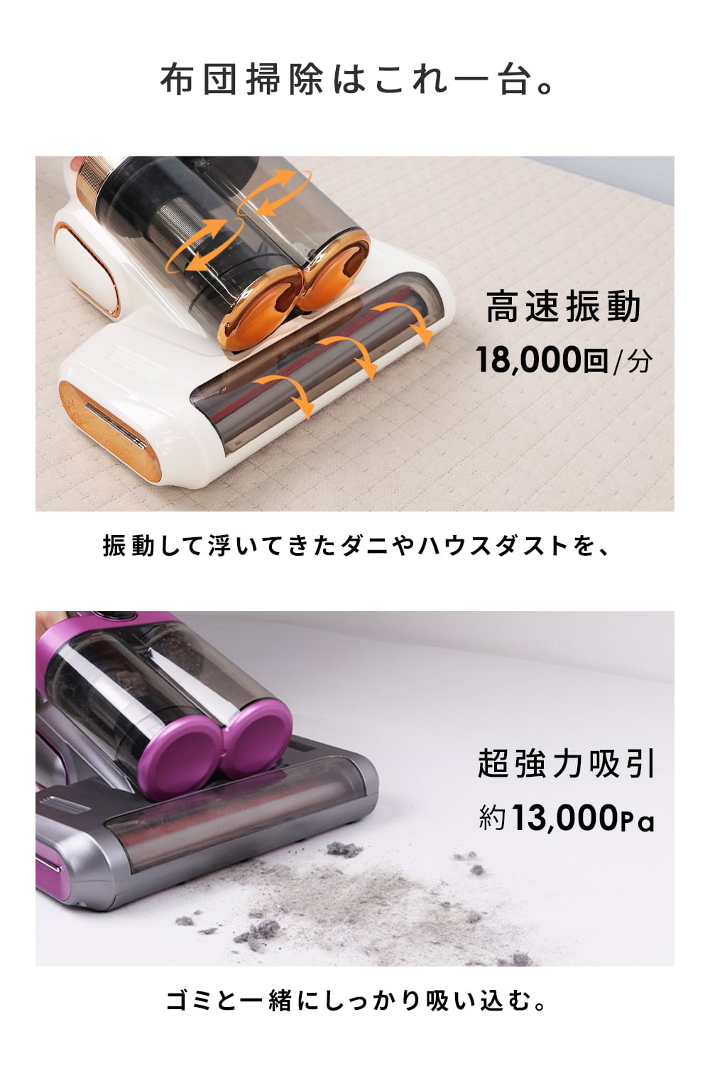 コンパクトながら強力吸引で、一年中快適な睡眠環境をサポートします。