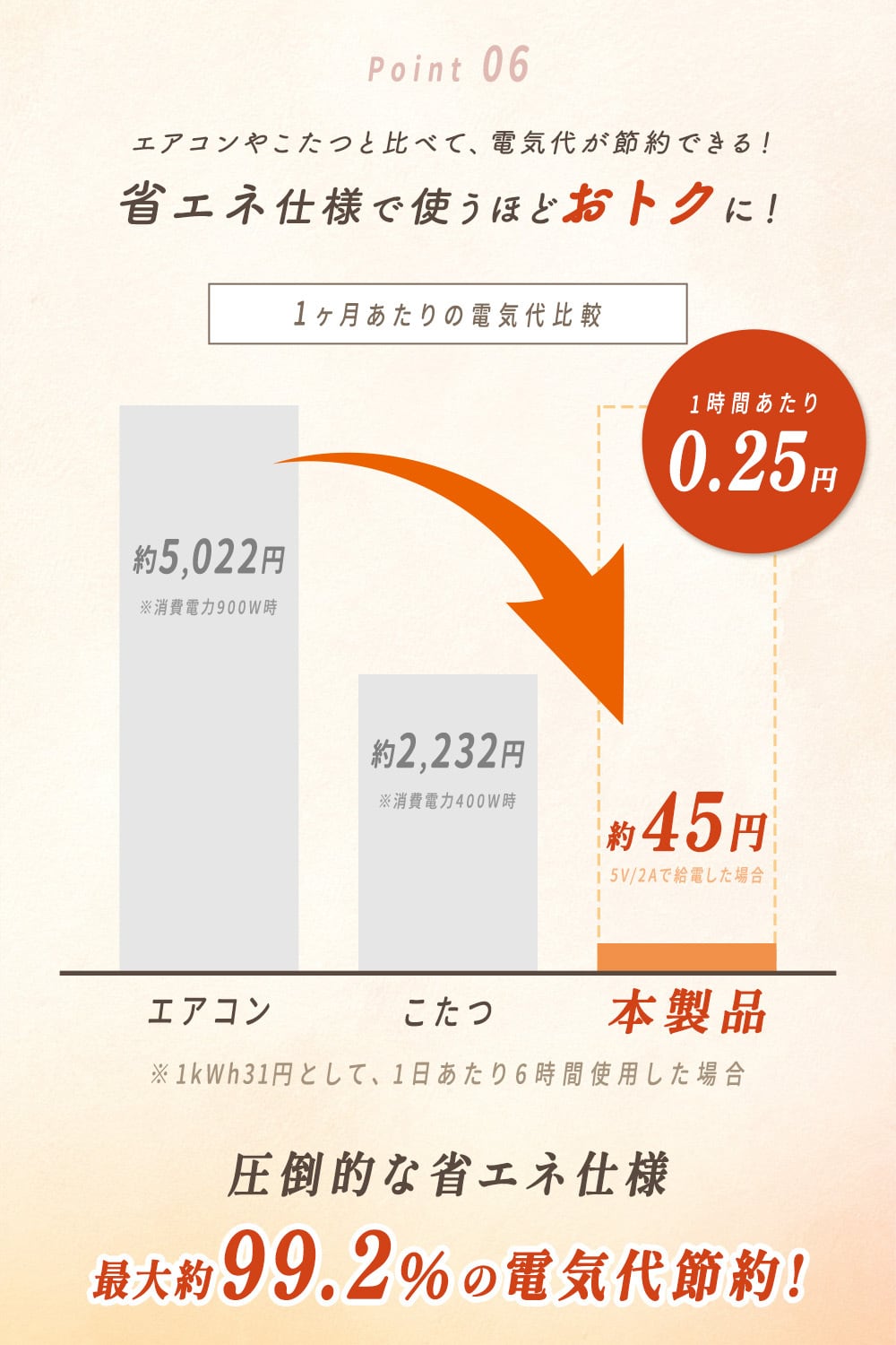 エアコンやこたつよりもぐっと電気代を節約できます。