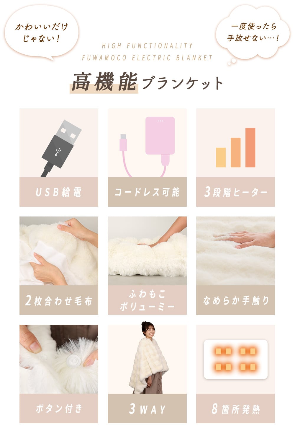 Rocotto 電気ブランケット usb ふわとろ毛布 3way