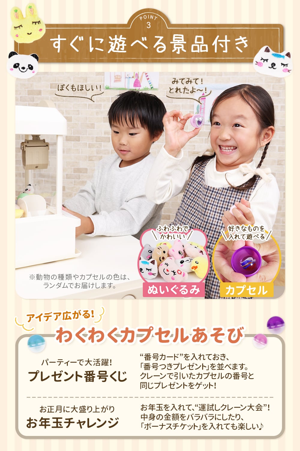 すぐに遊べる景品付き