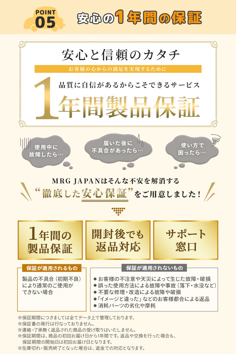 ■POINT 6|安心素材+1年保証