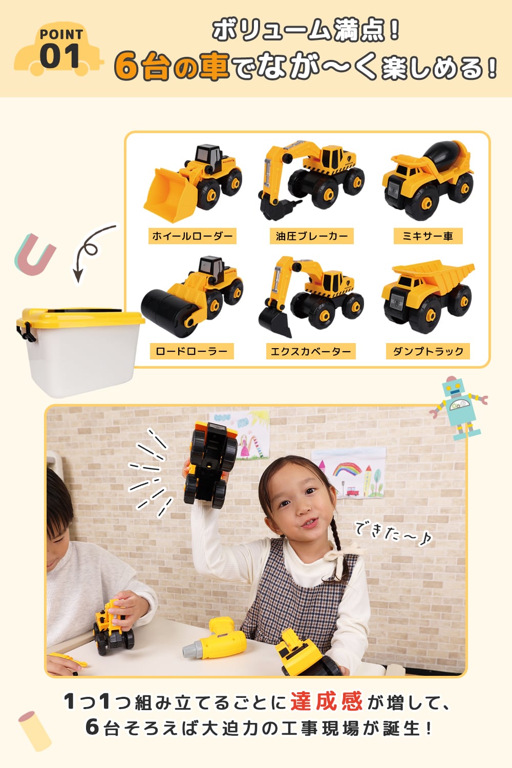 ■POINT 1|はたらく車6種類をぜんぶ作れる