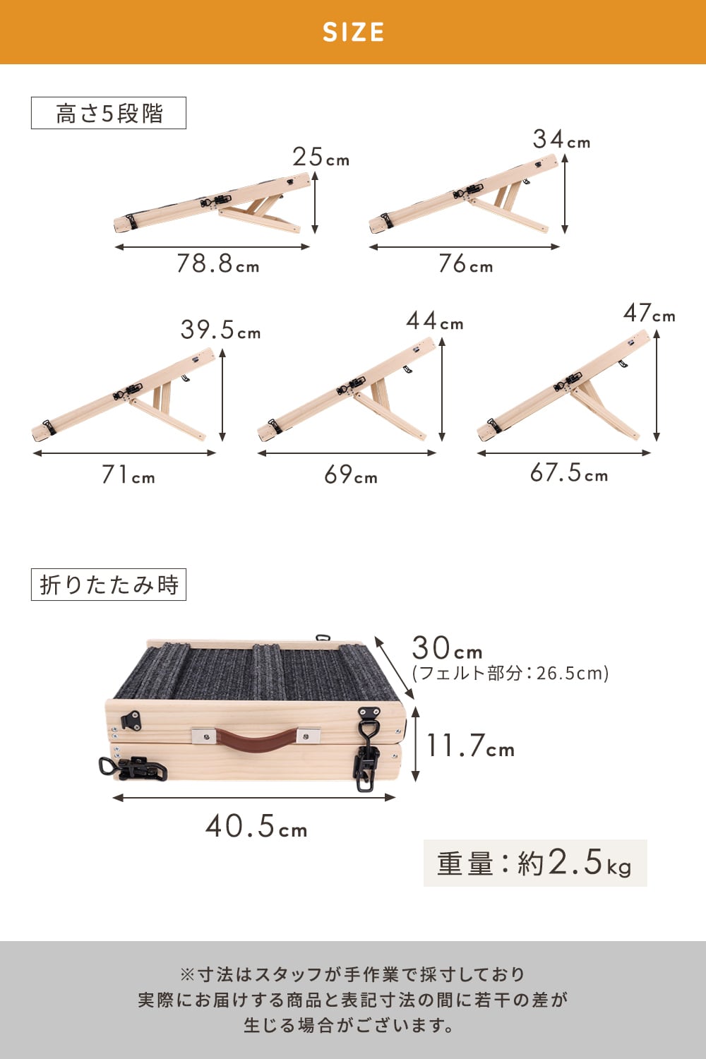 3段階:約39.5cm(長さ:約71cm)