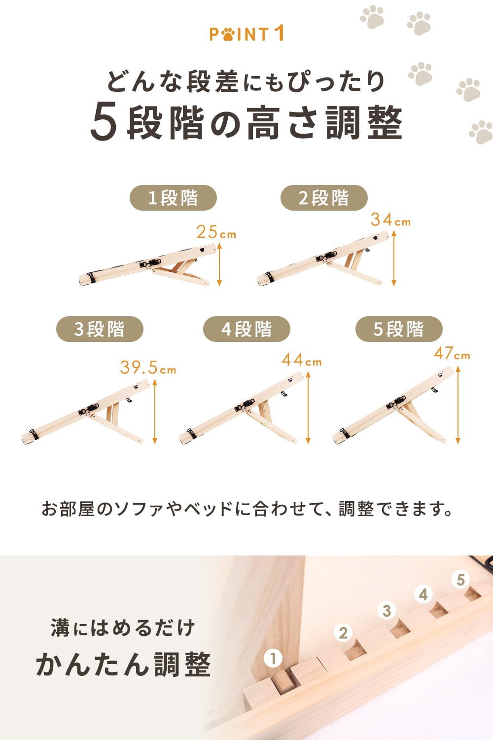 高さ5段階調整可能