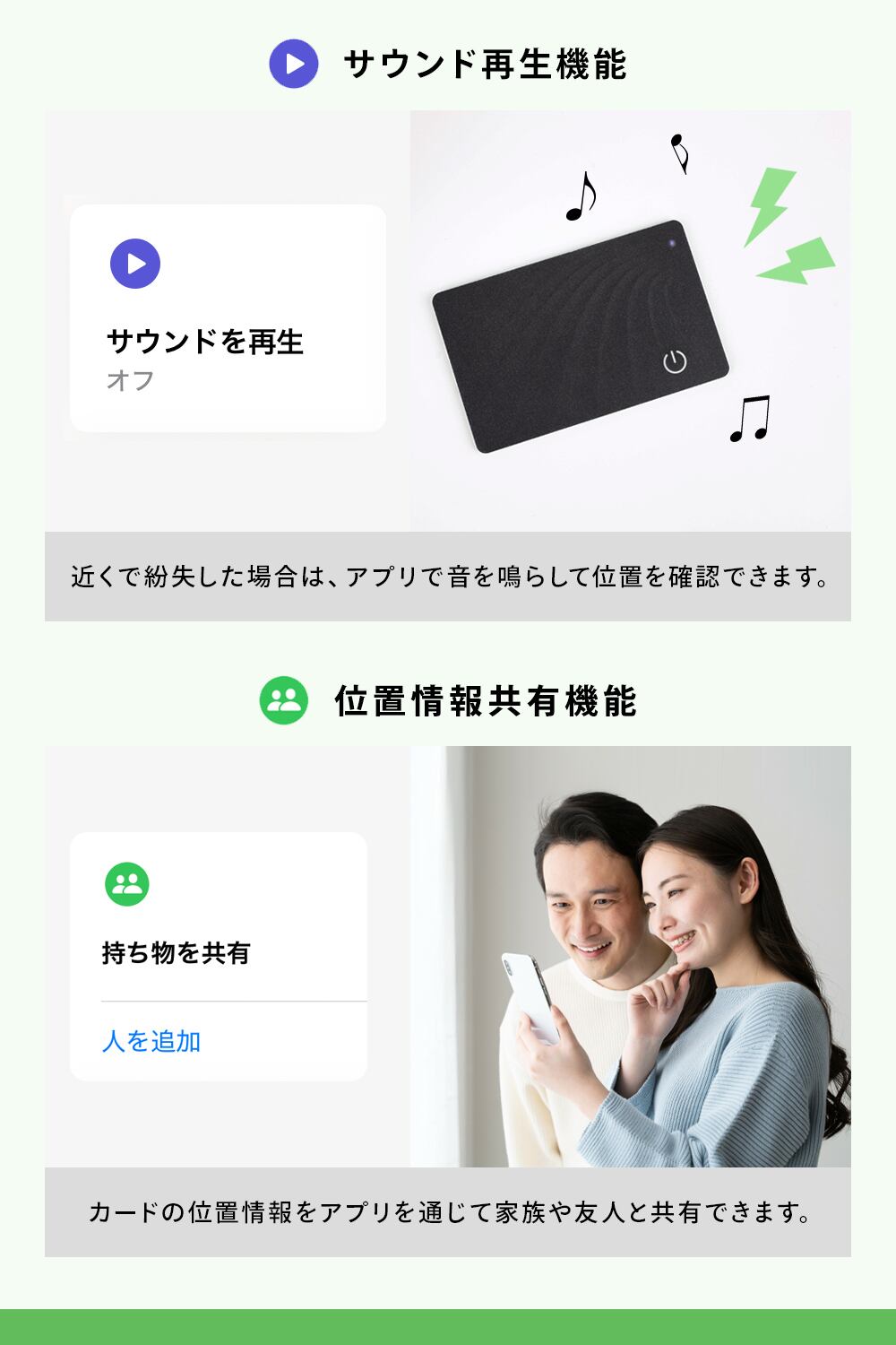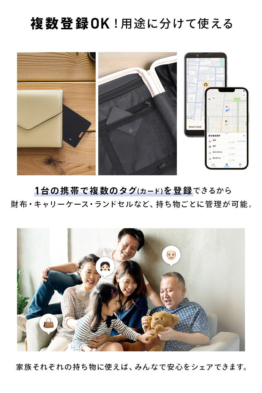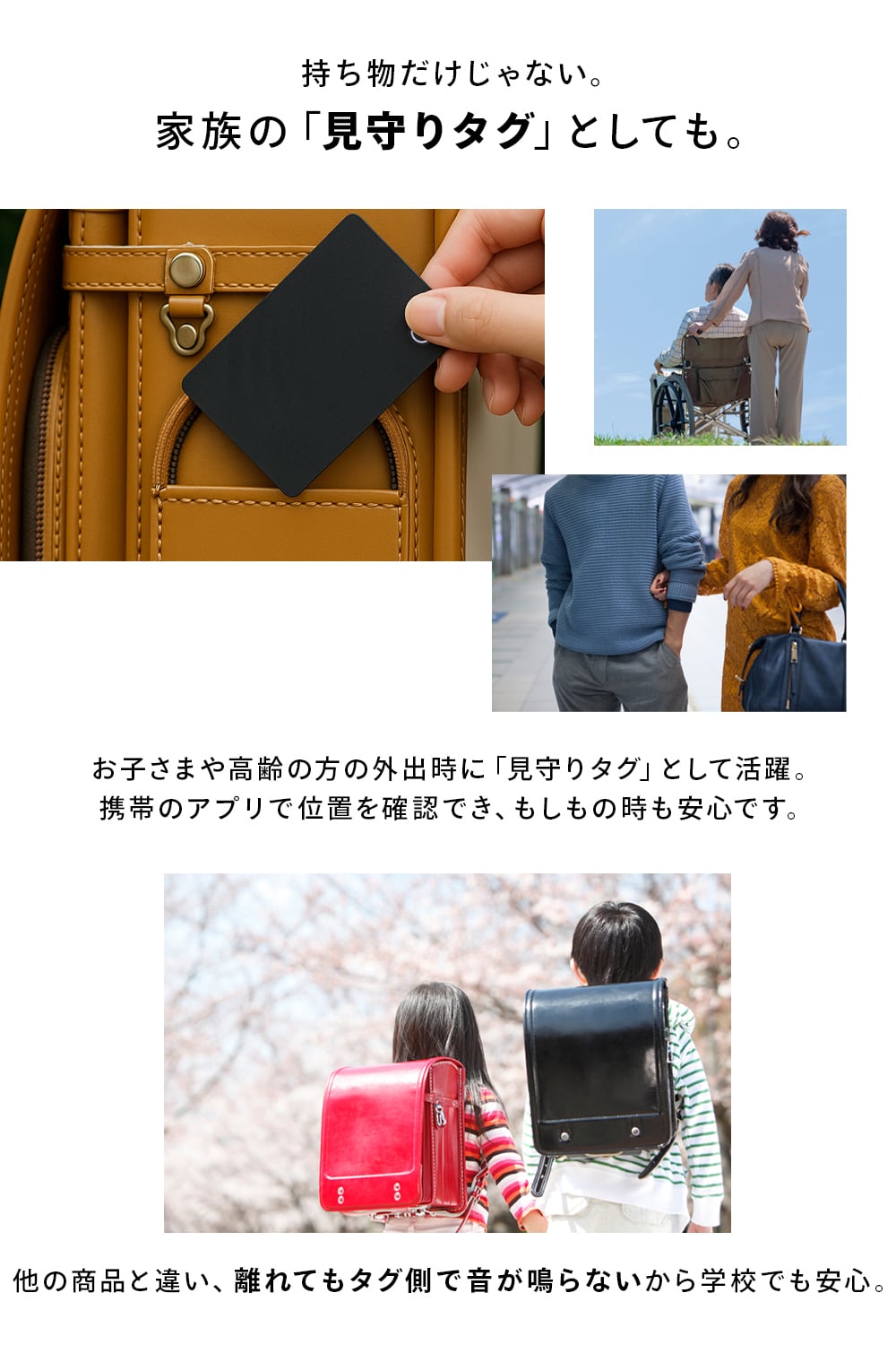 家族それぞれの持ち物に入れて安心をシェアできます。