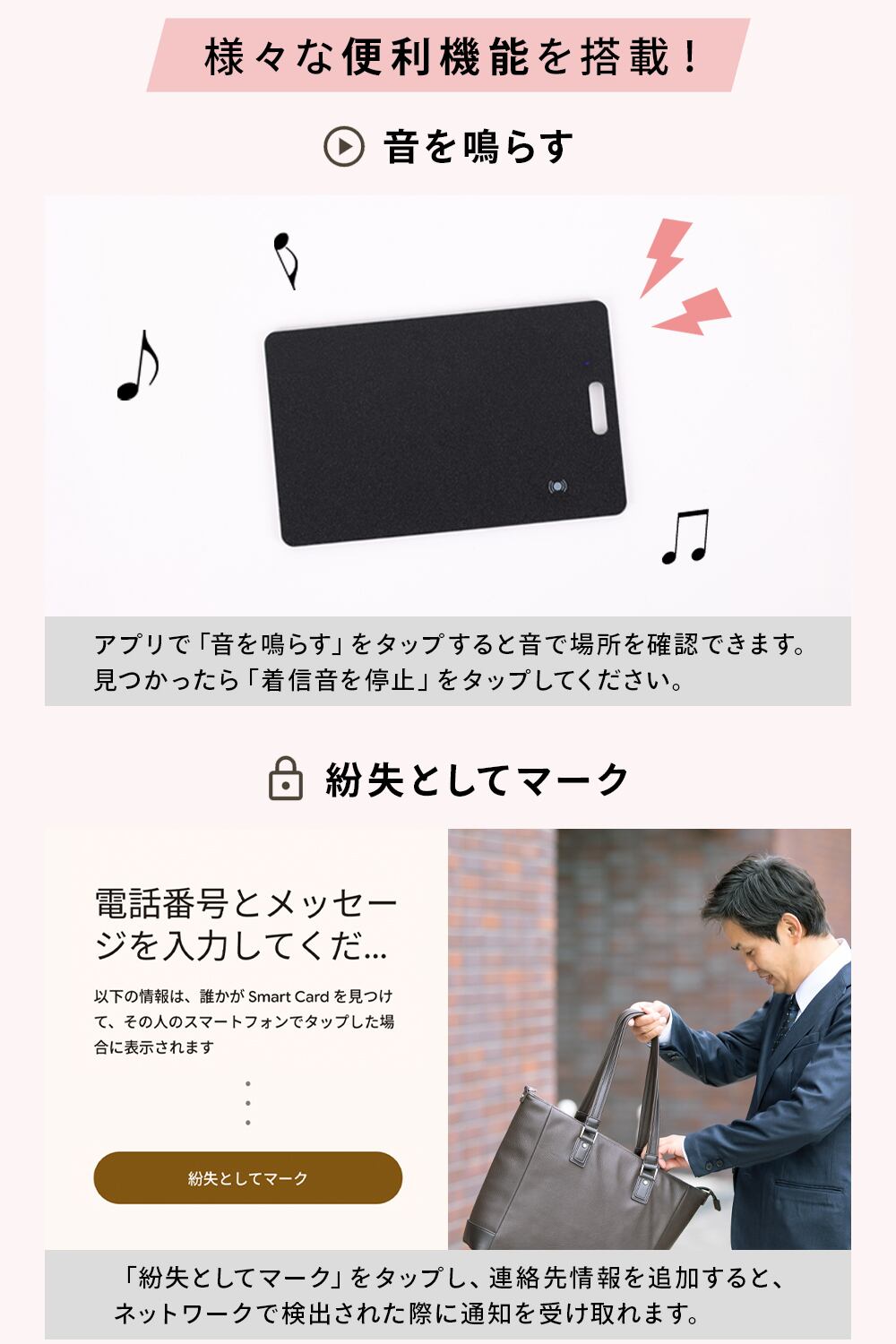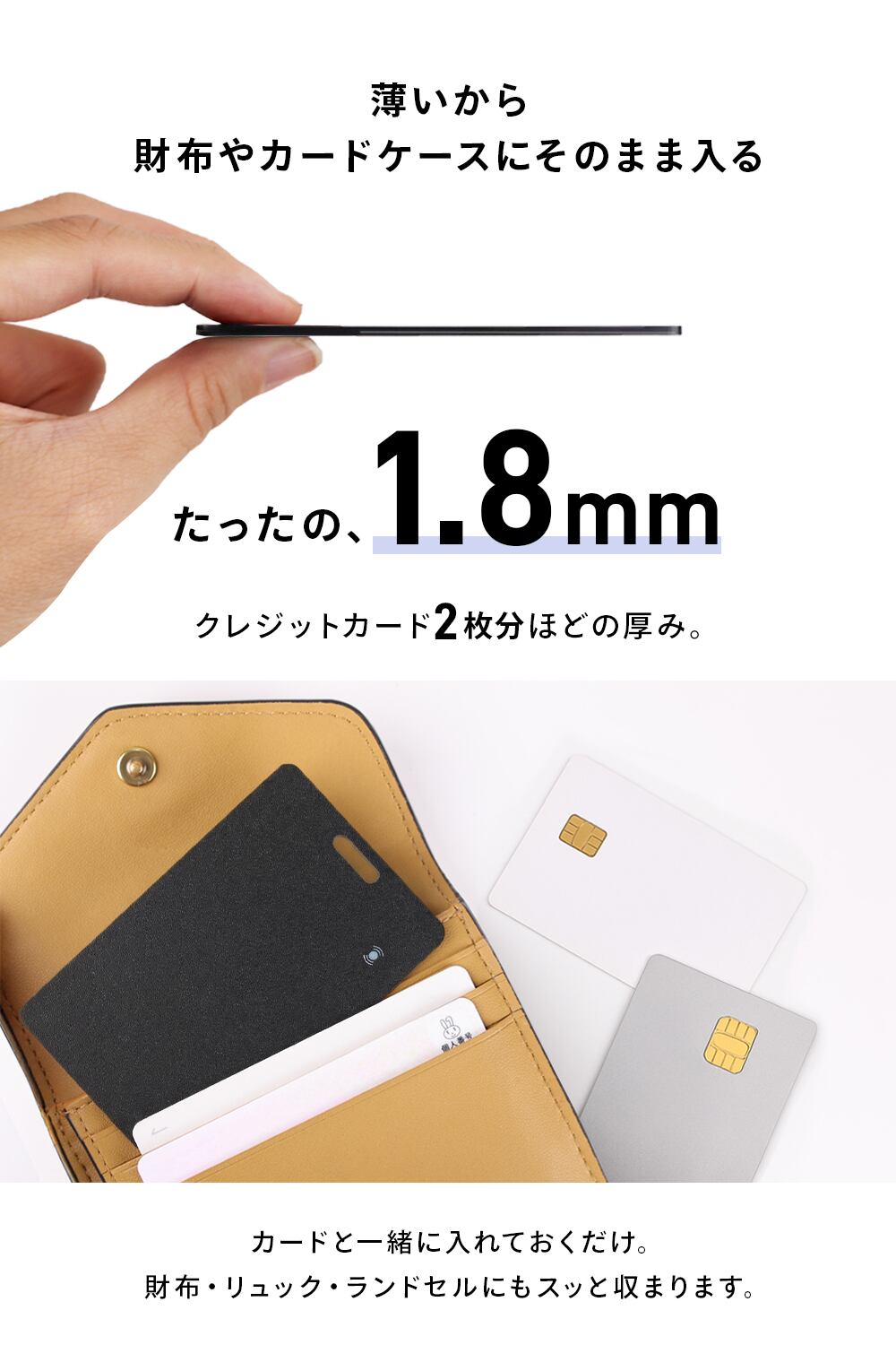厚さわずか約1.8mm(カード2枚分ほど)の超薄型タグ。
