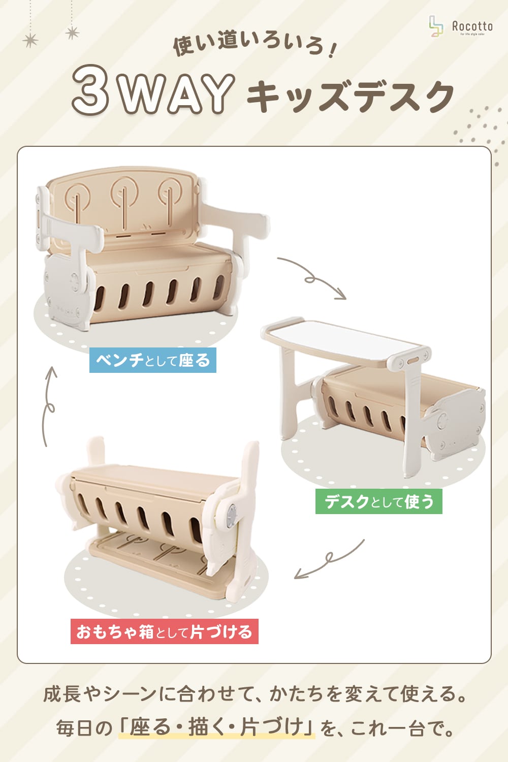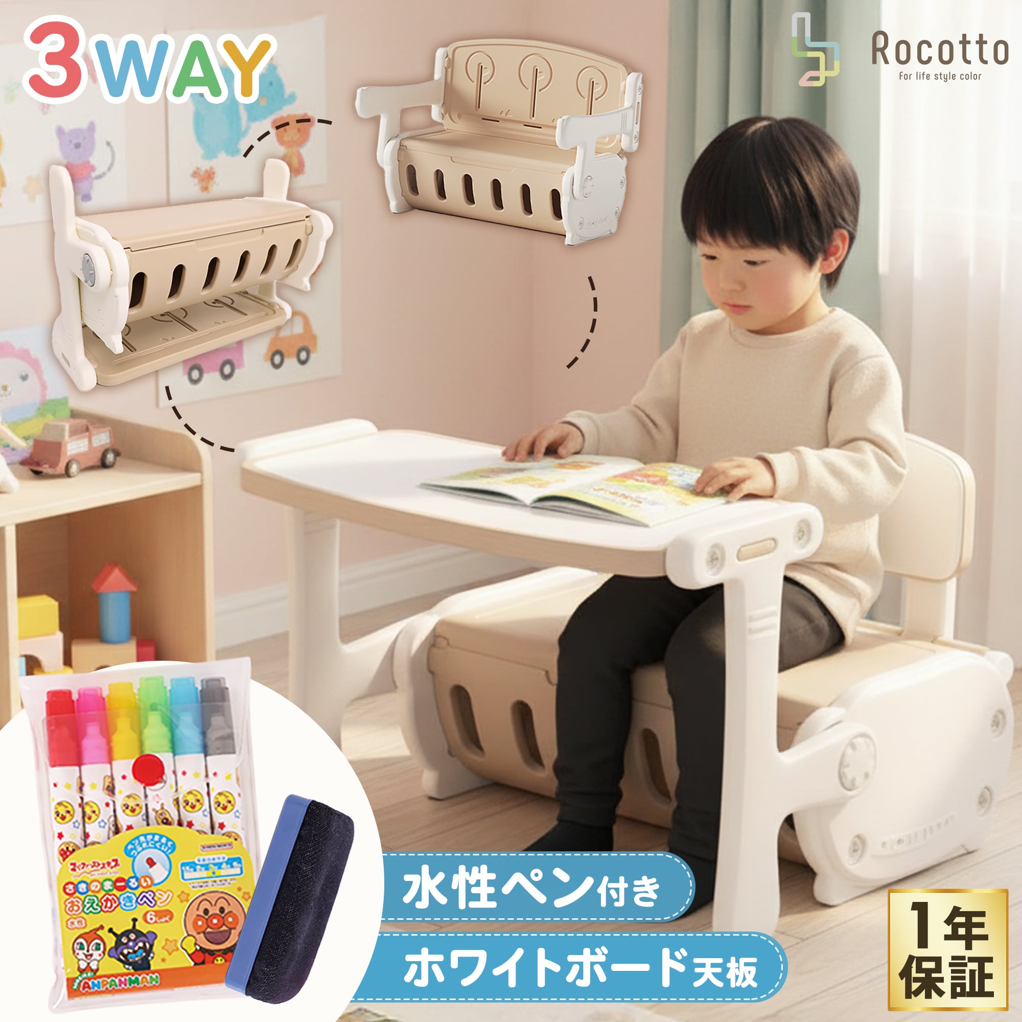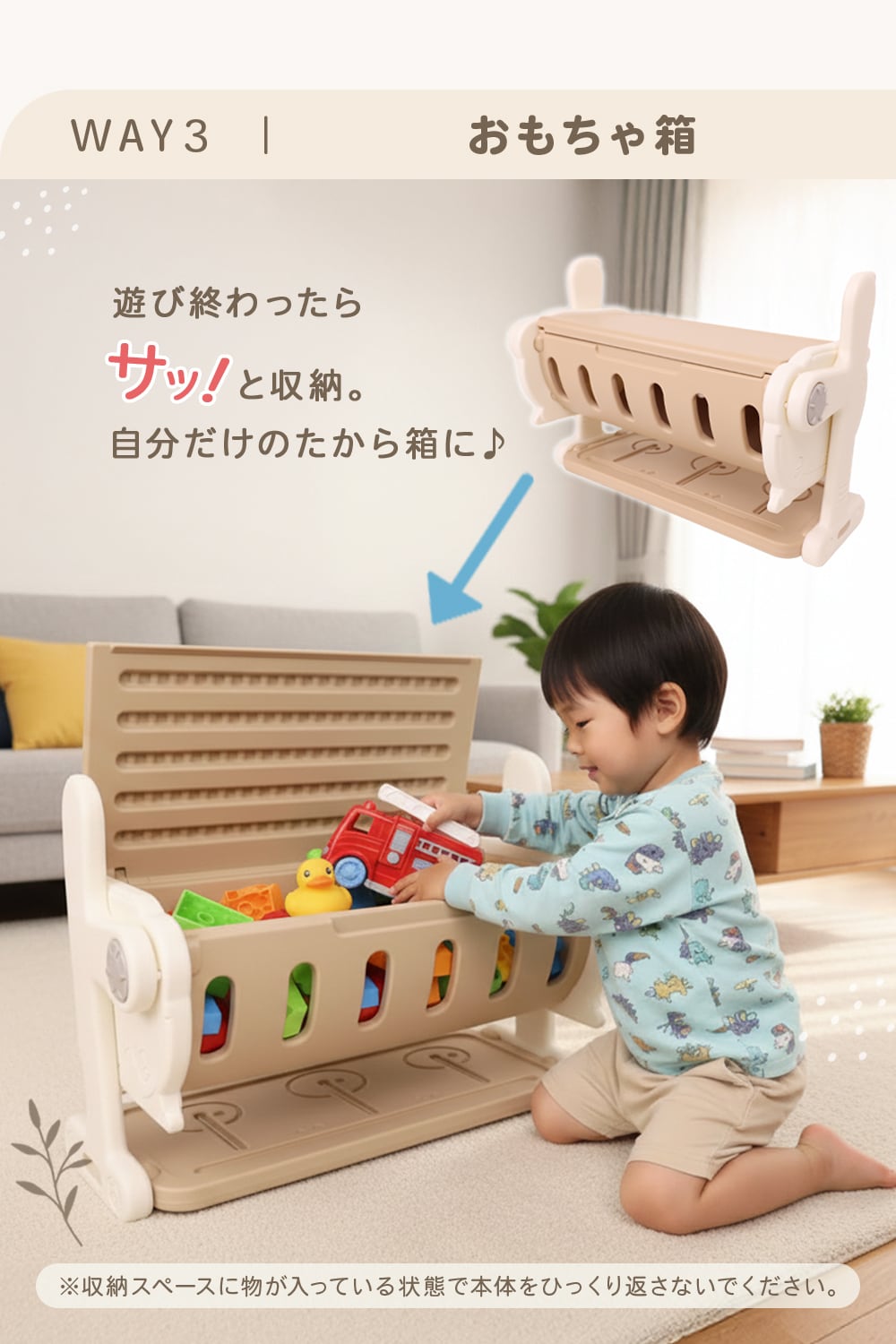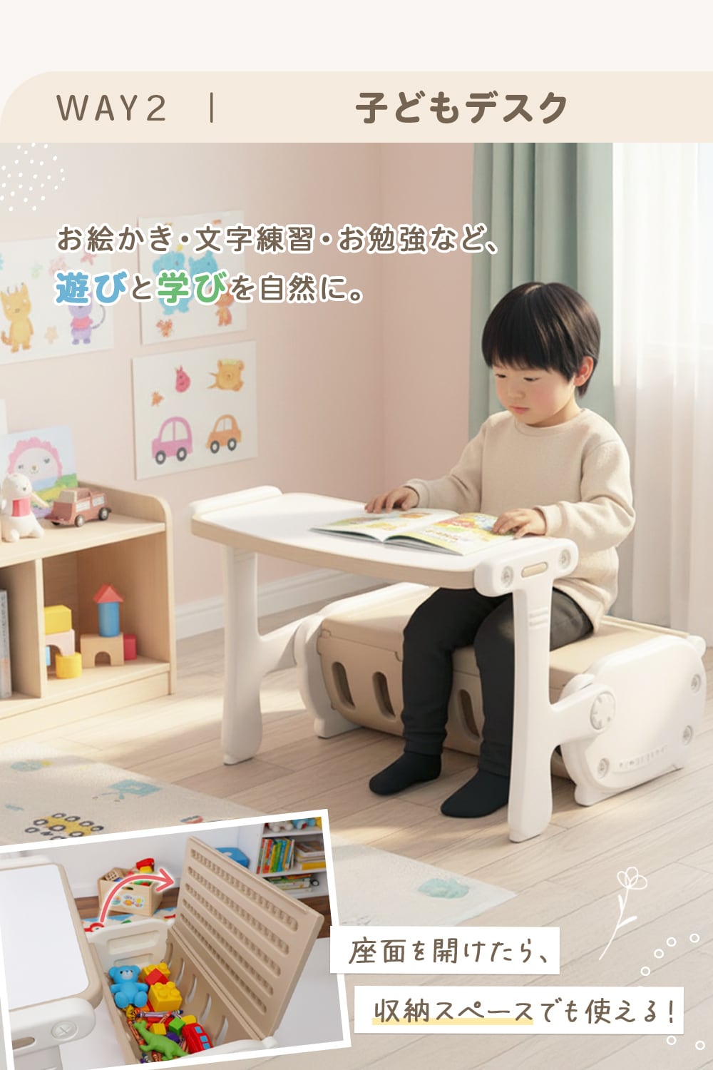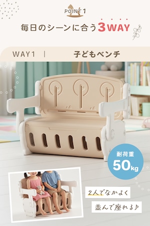 ベンチ・デスク・おもちゃ箱の3WAY。
