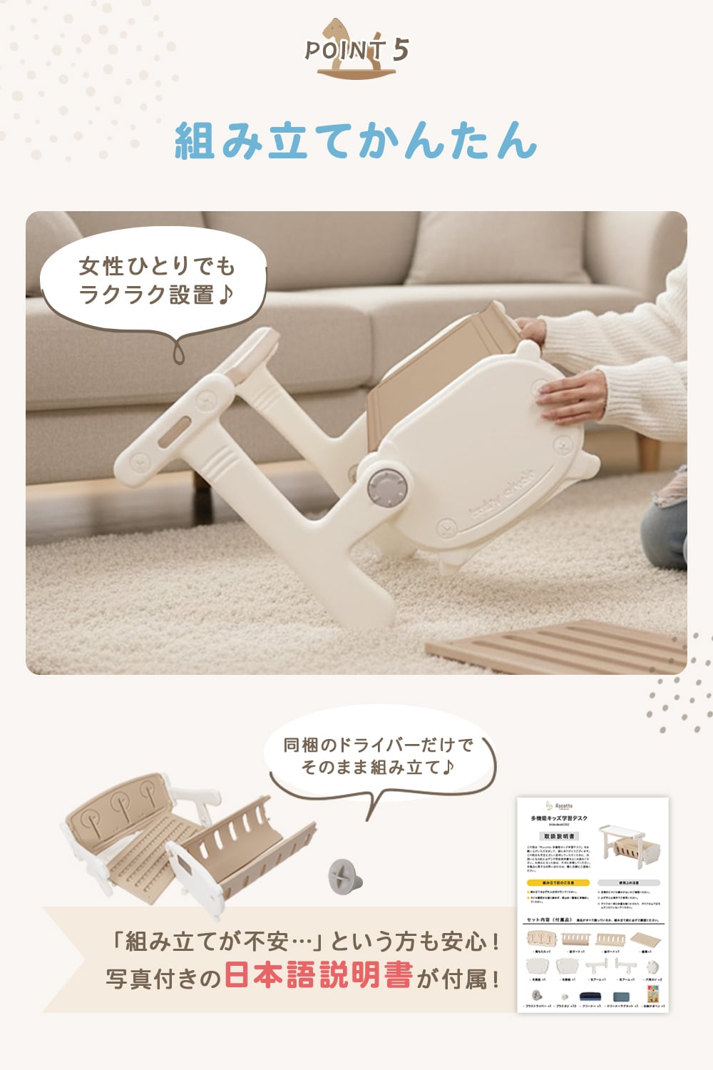 大人ひとりでもスムーズに組み立てられます。