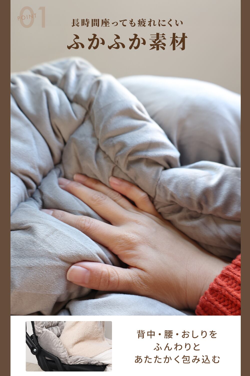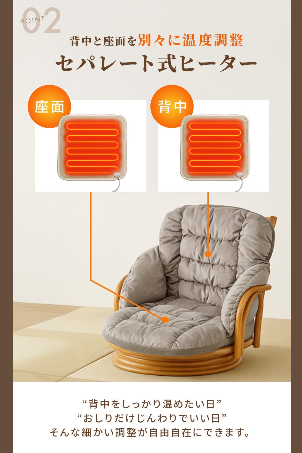 「背中はしっかりあたたかく、座面はほんのり」