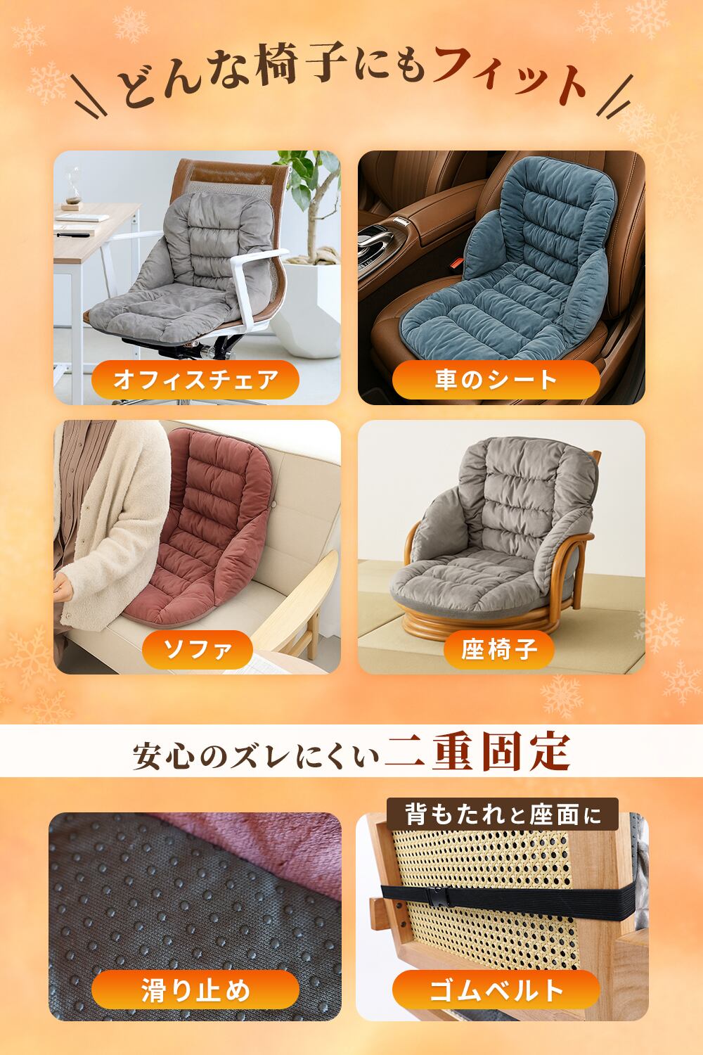 ソファ・座椅子・車のシートなど、毎日使う場所がそのまま快適空間に。