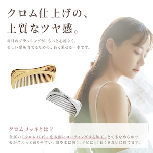 クロムメッキ仕上げのなめらかな表面で、髪がスルッと通りやすく、摩擦によるダメージを軽減します。