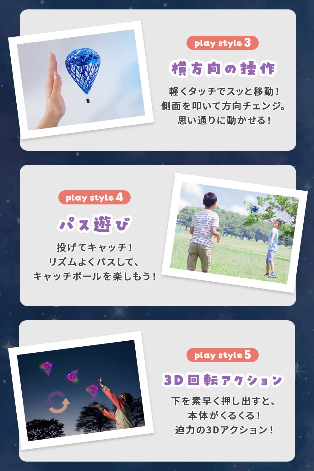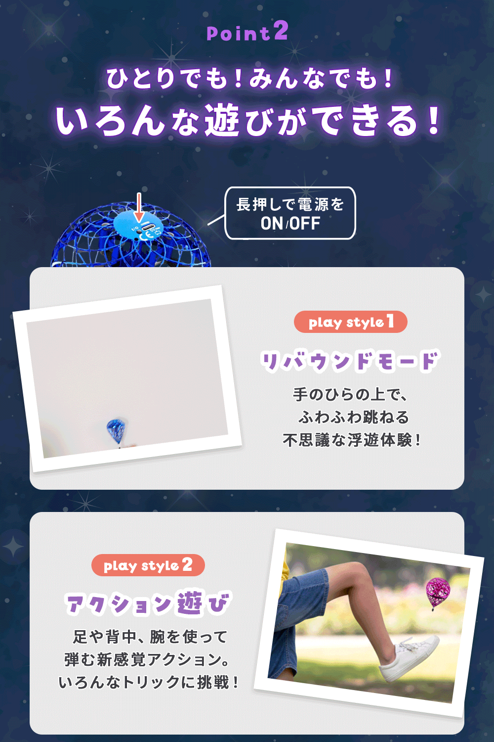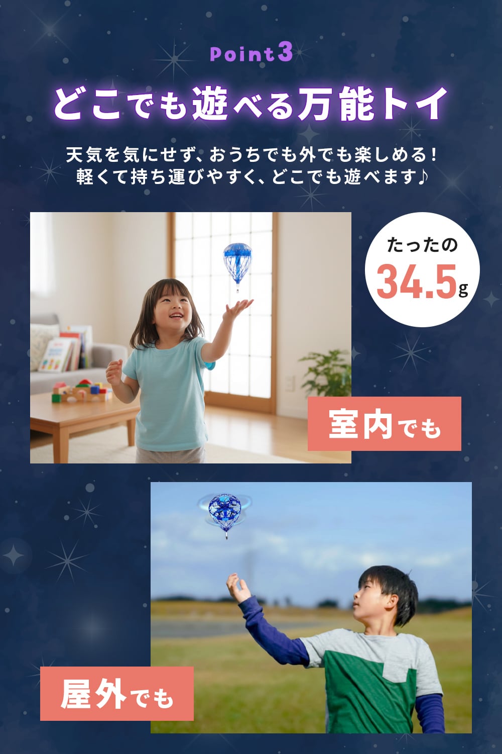 空中で輝く姿はインパクト抜群、遊びの楽しさがさらにアップ。