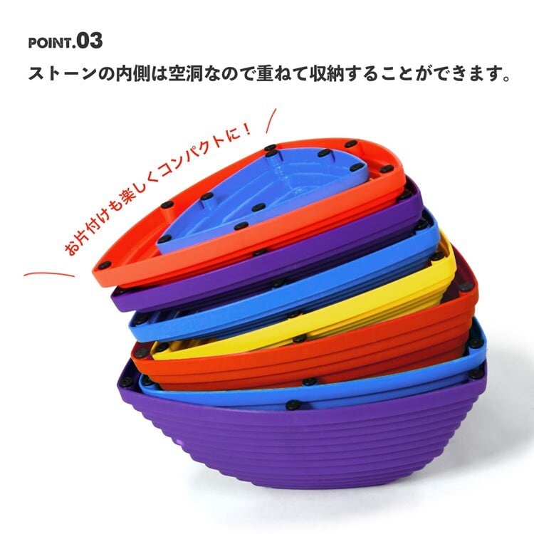 バランスストーンは川の中にある石を飛び移っていく遊びをイメー ジした遊具。