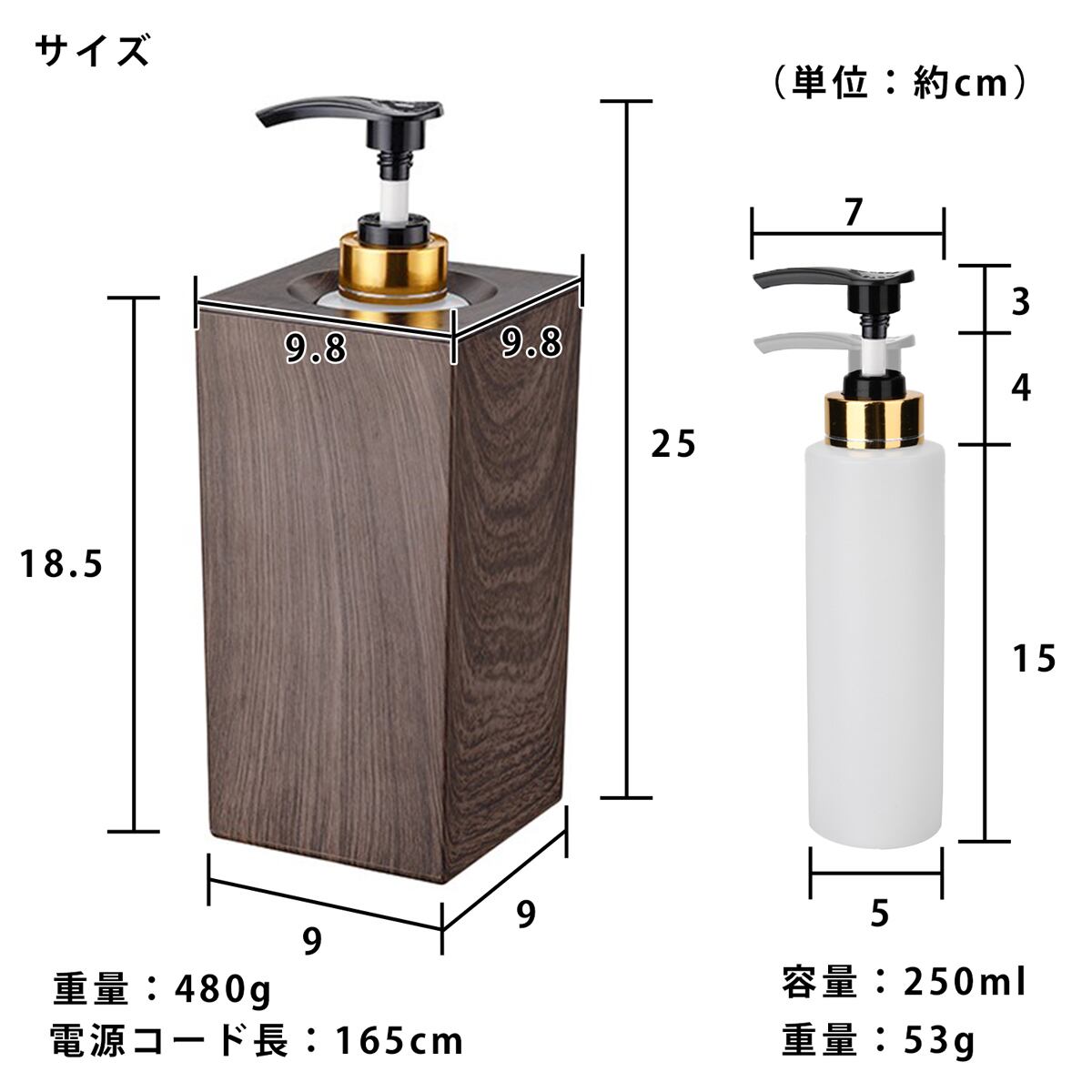 :9.8×9.8×18(25)cm(本体+ボトルセット時)