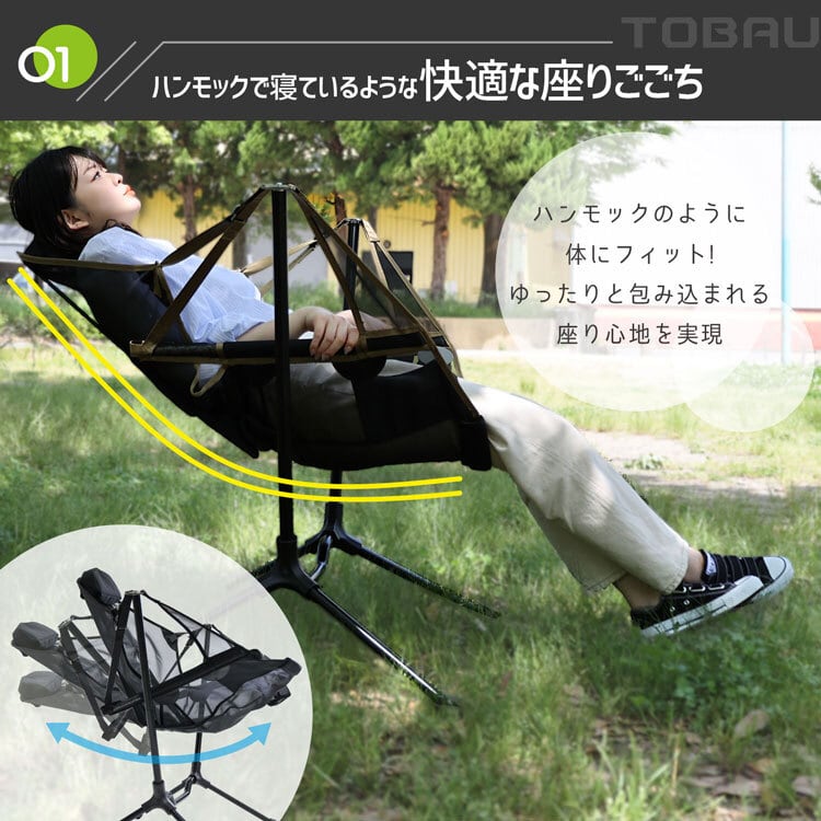新感覚の座り心地!ハンモックのような快適さをもつ折り畳み式チェアです。