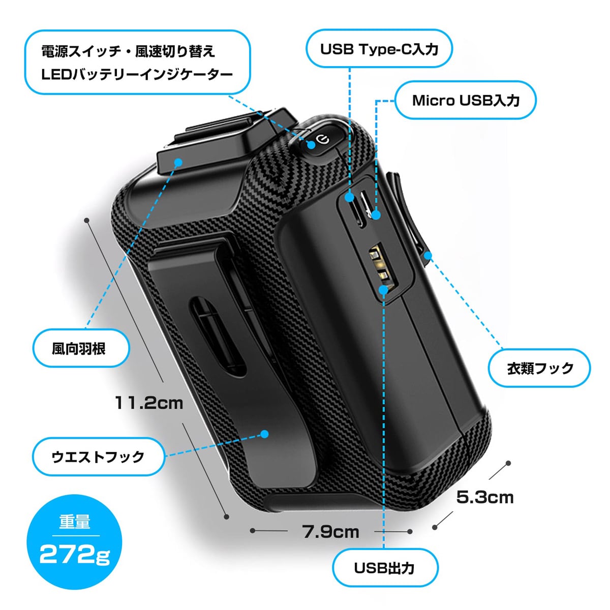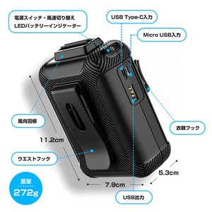 またモバイルバッテリーとしても使えるので、腰につけて送風運転しながらスマホの充電が可能!