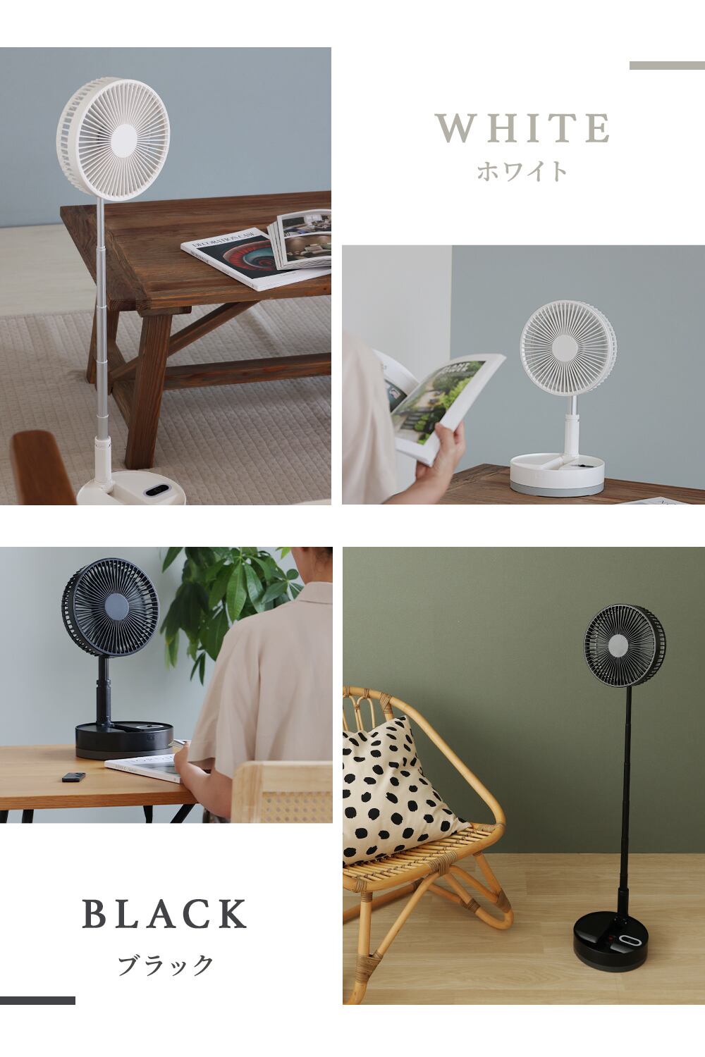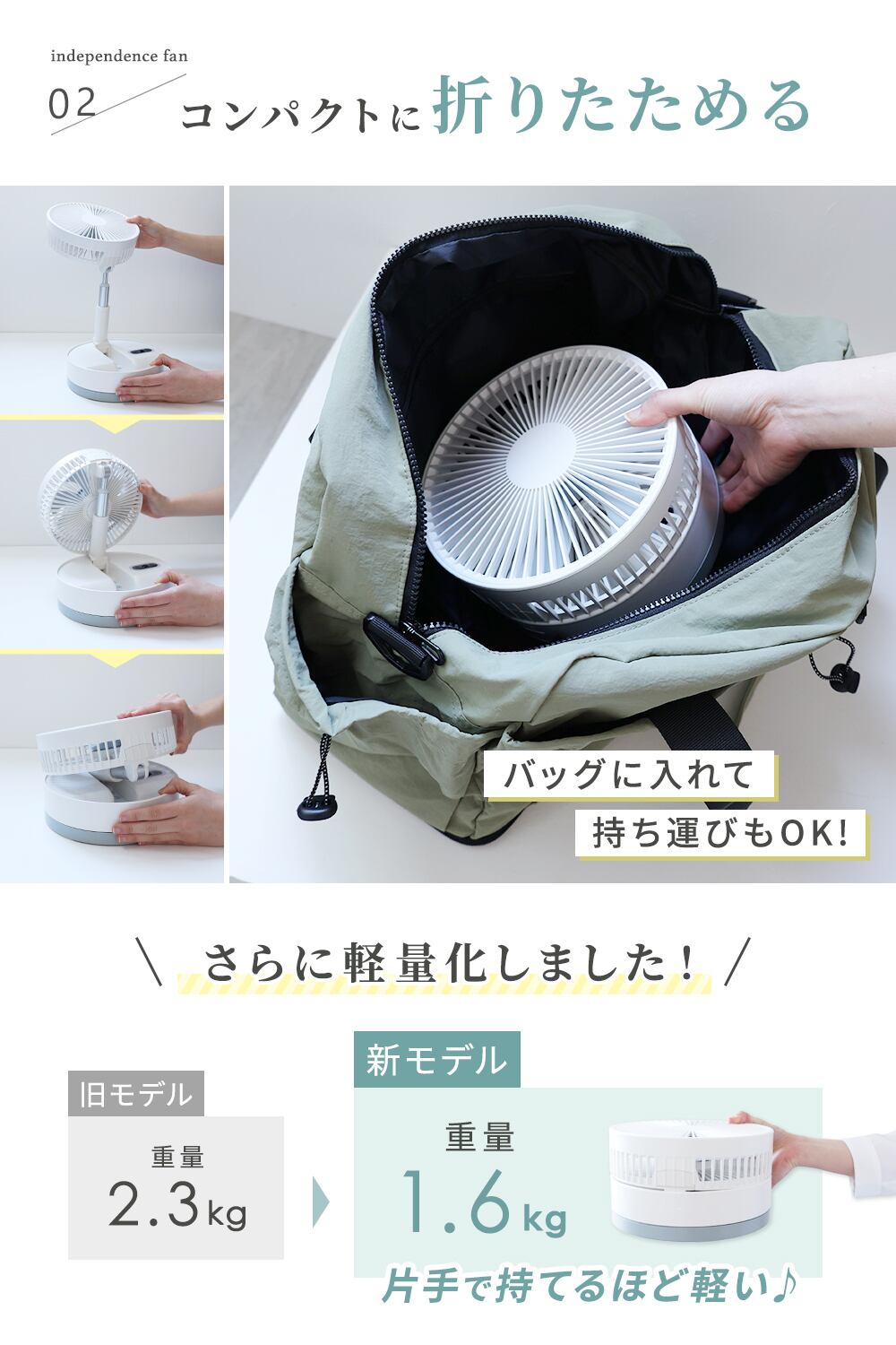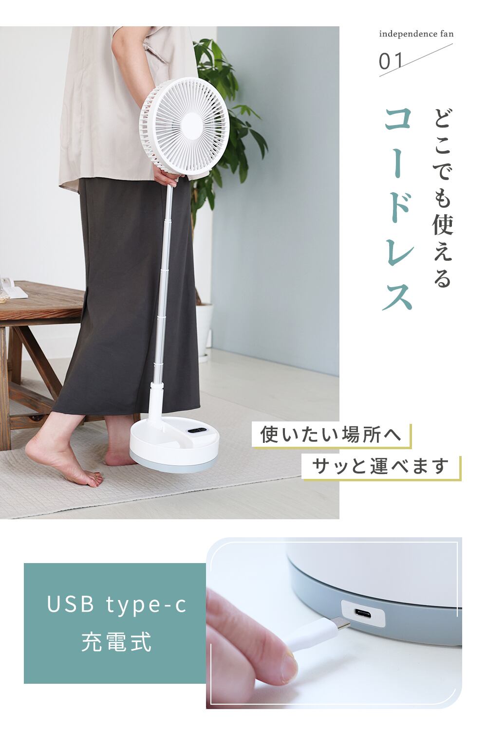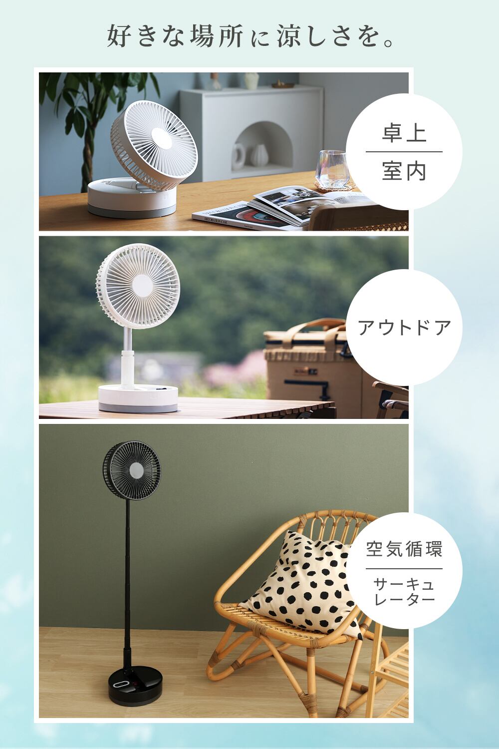 折りたたんで持ち運べる、コードレス扇風機です。