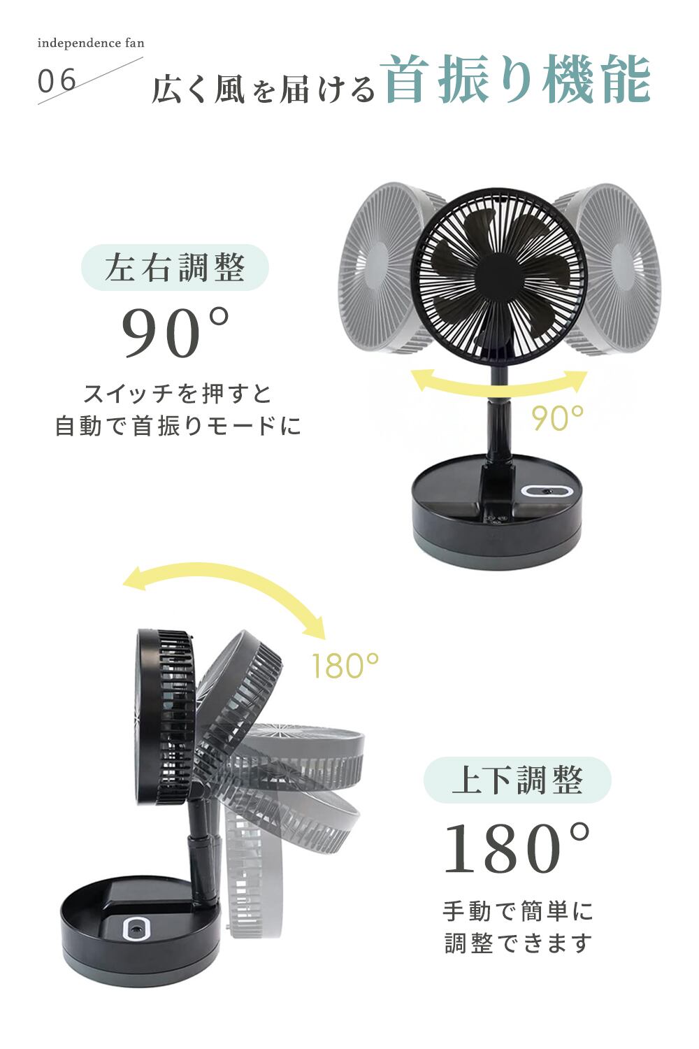 最新型 充電式 折りたたみ扇風機 自動首振り リモコン付き