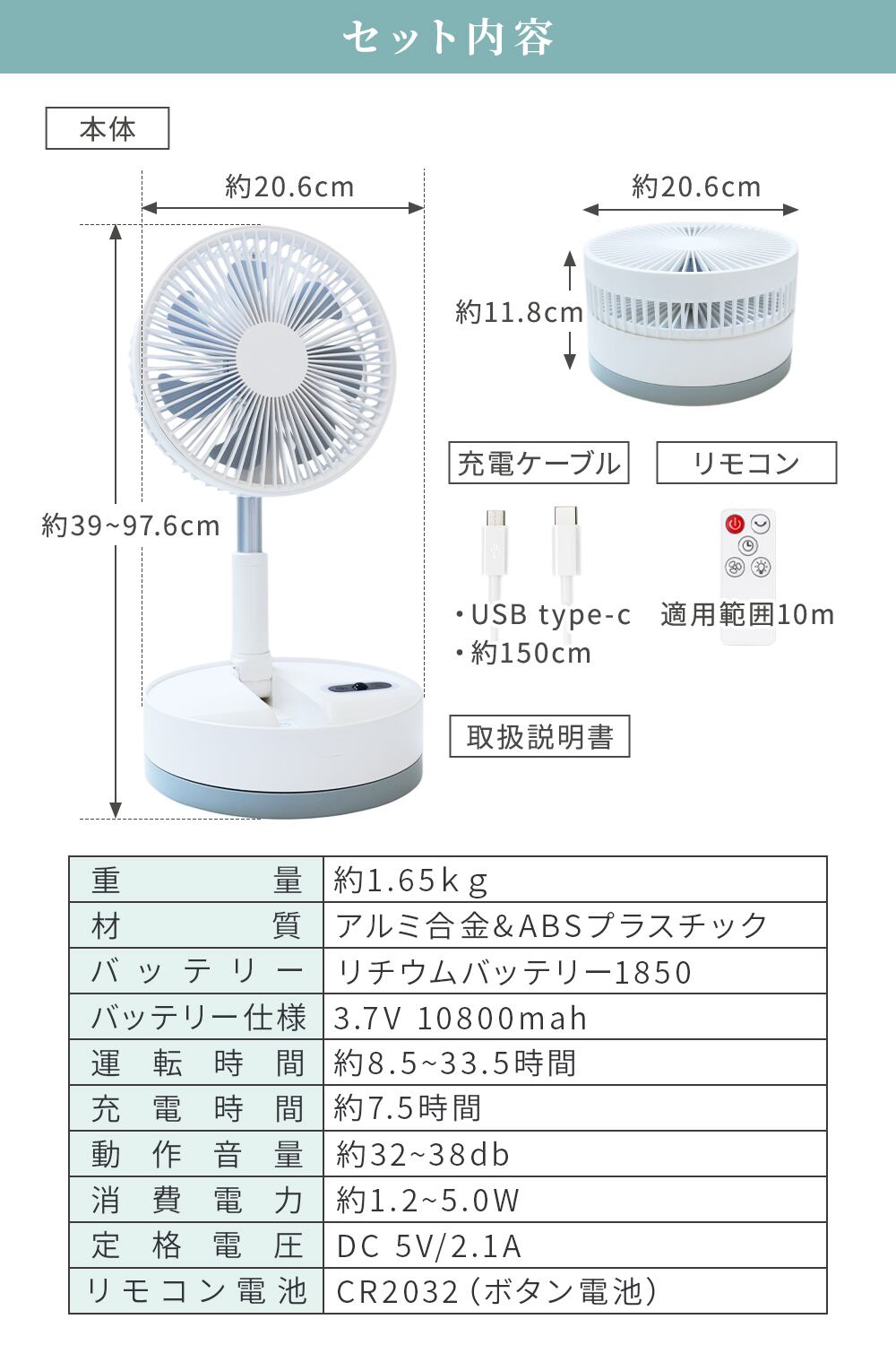商品内容 本体、USBtype-c充電ケーブル、リモコン、取扱説明書