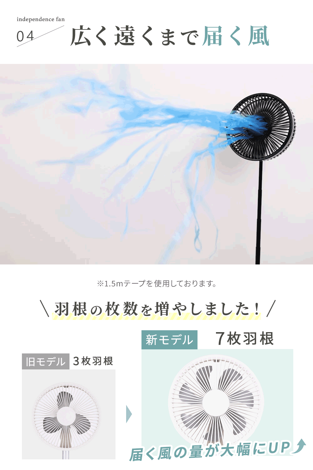 羽根の枚数を増やし、風の広がりと送風力がアップ。