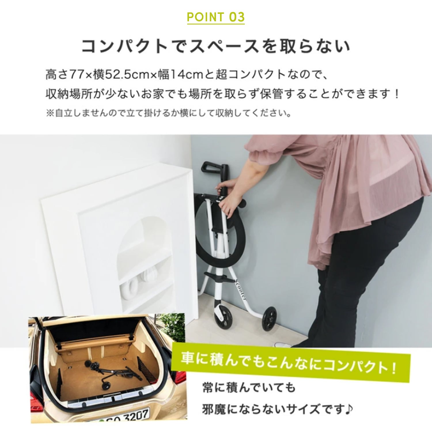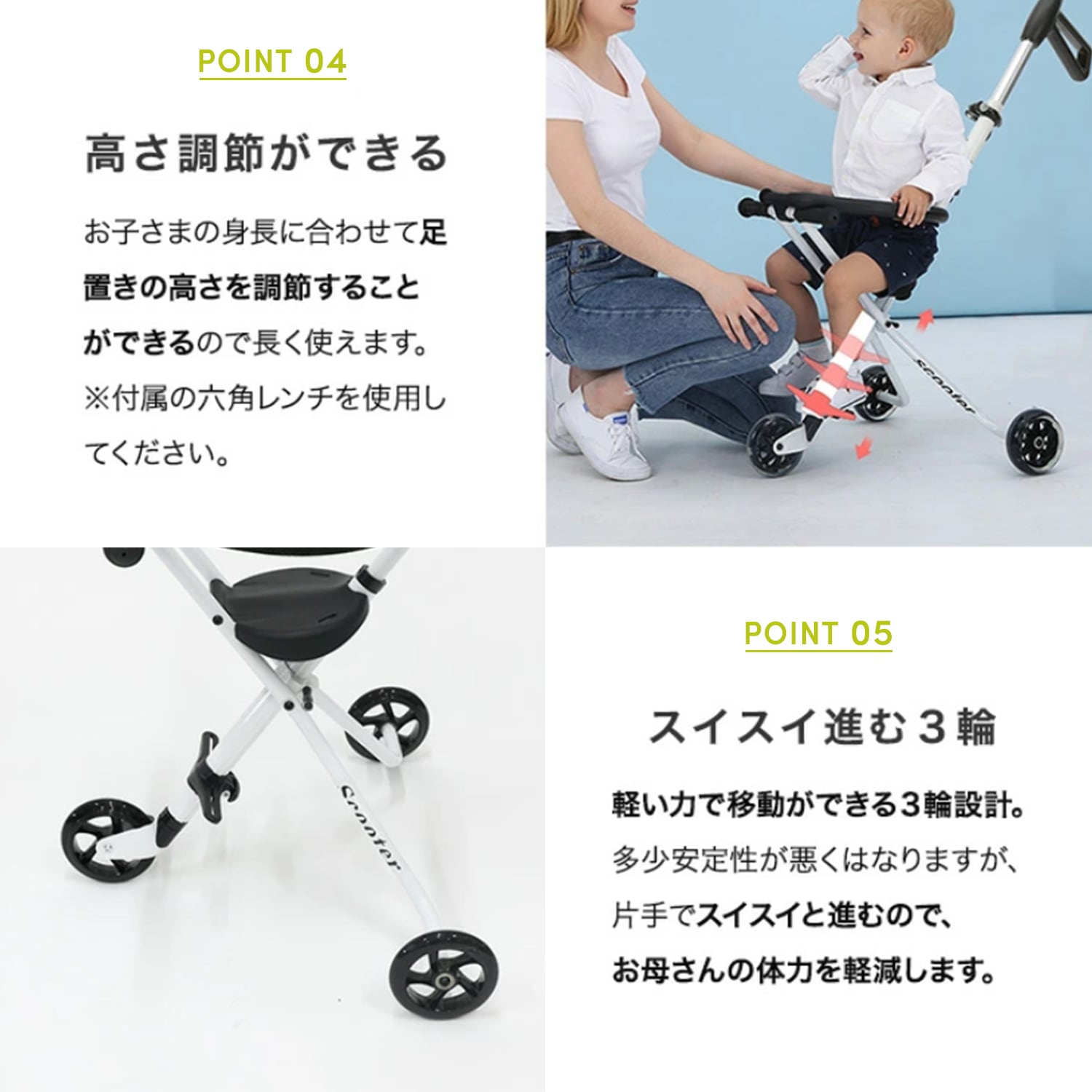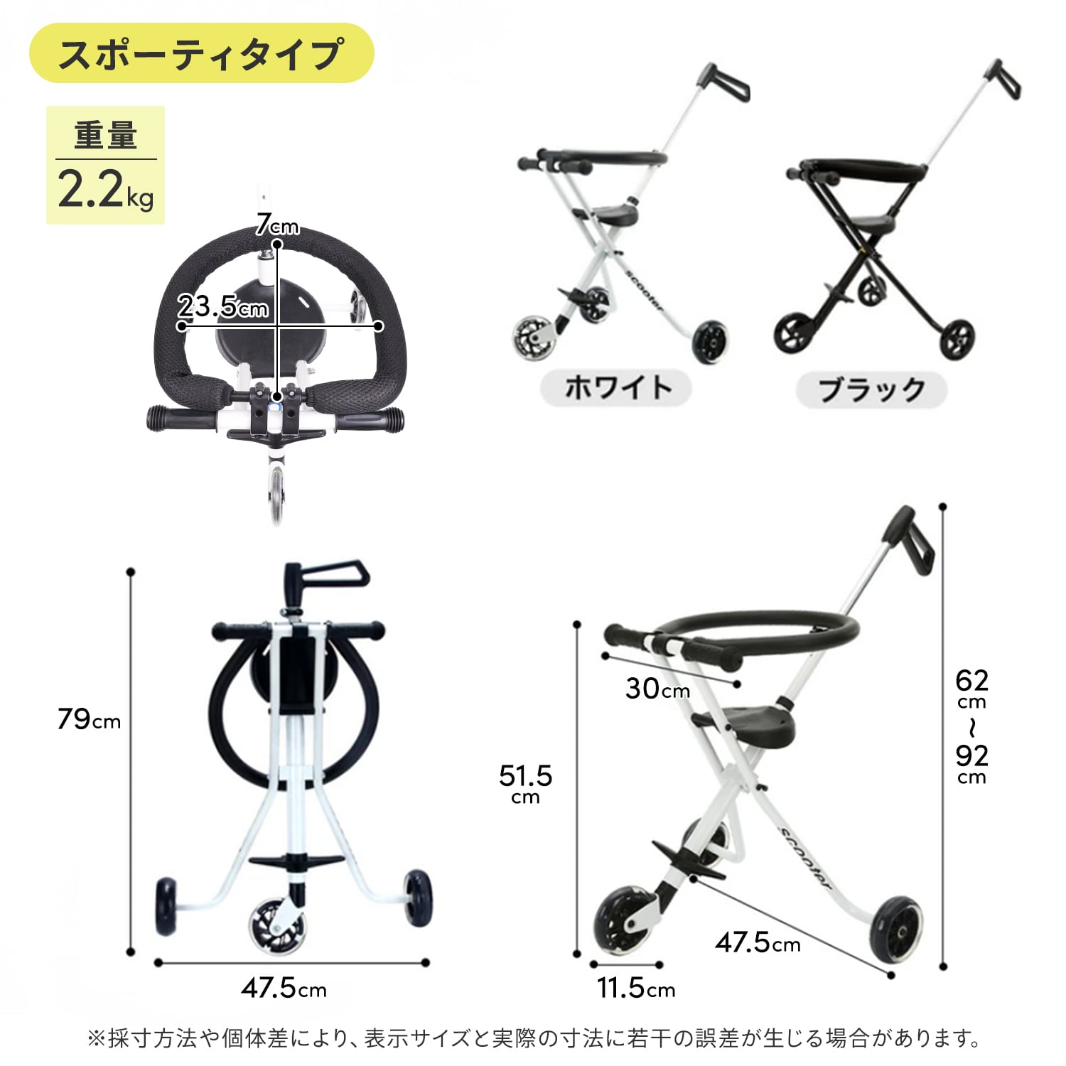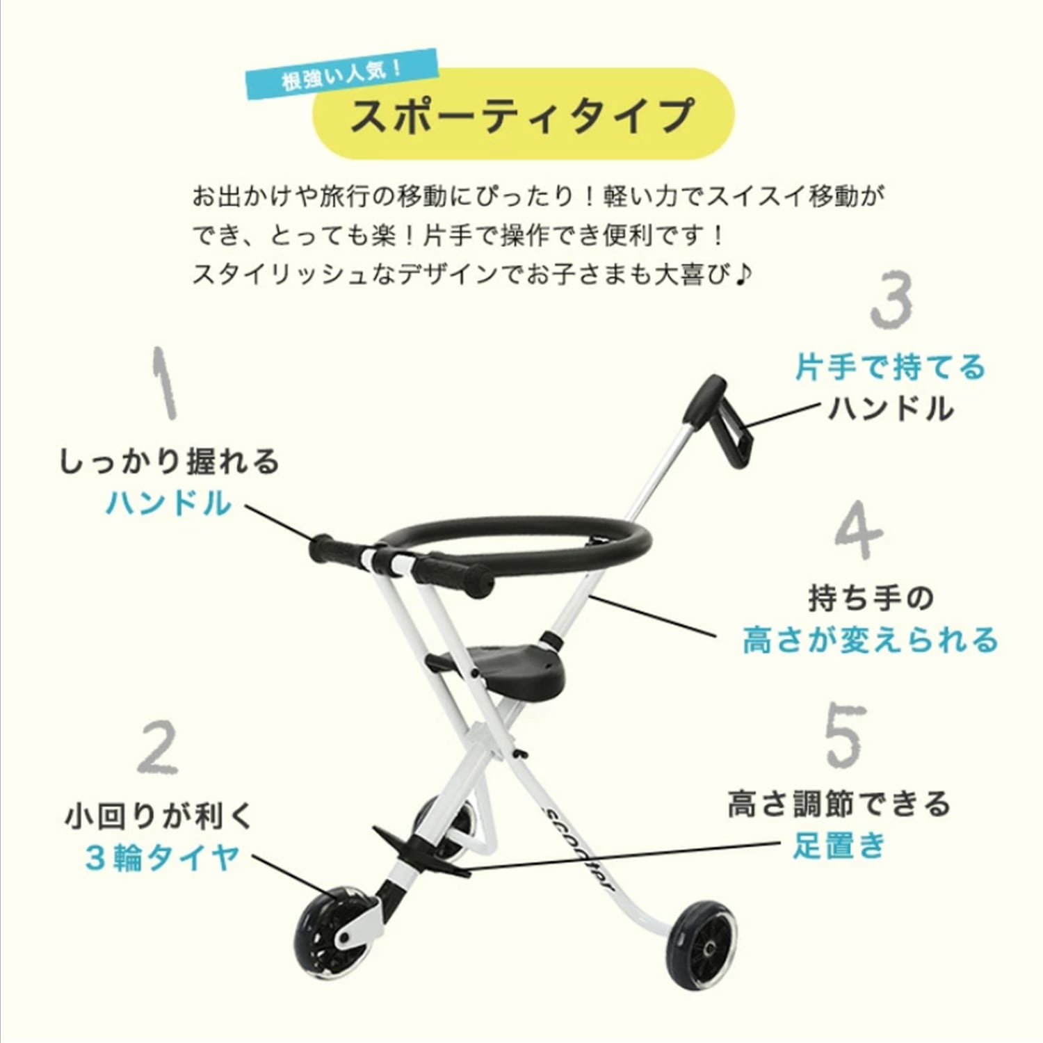 スポーティーでお手軽感を追求した3輪タイプは、重さ2.2kgと超軽量で持ち運びラクラク!
