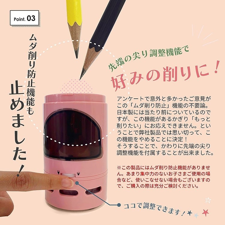 日本製品には一般的な「削りすぎ防止機能」を廃止!