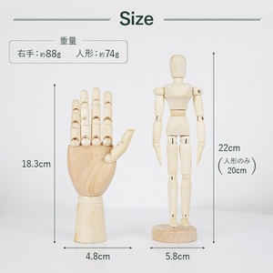 デッサンやイラストに最適な木製の人形と右手モデルのセットです。
