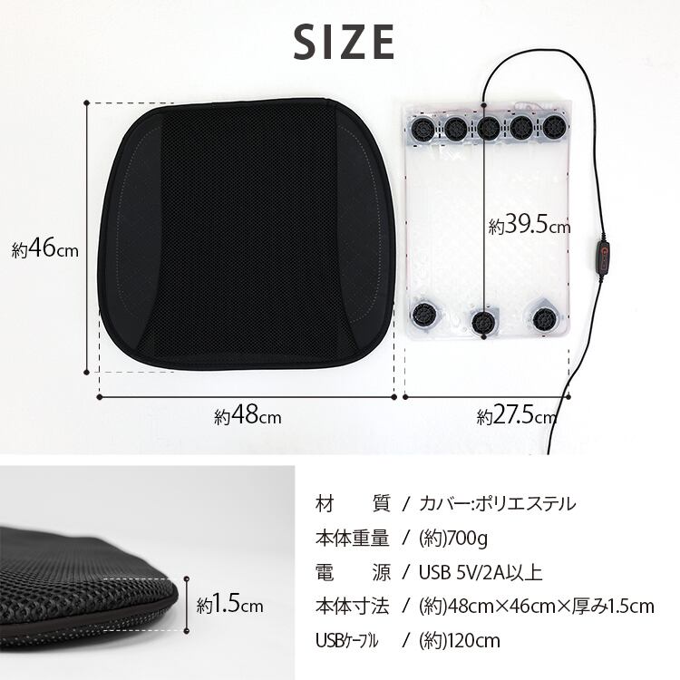 電源:USB 5V/2A以上カバーは洗濯可能(手洗いのみ/洗濯機・乾燥機使用不可)