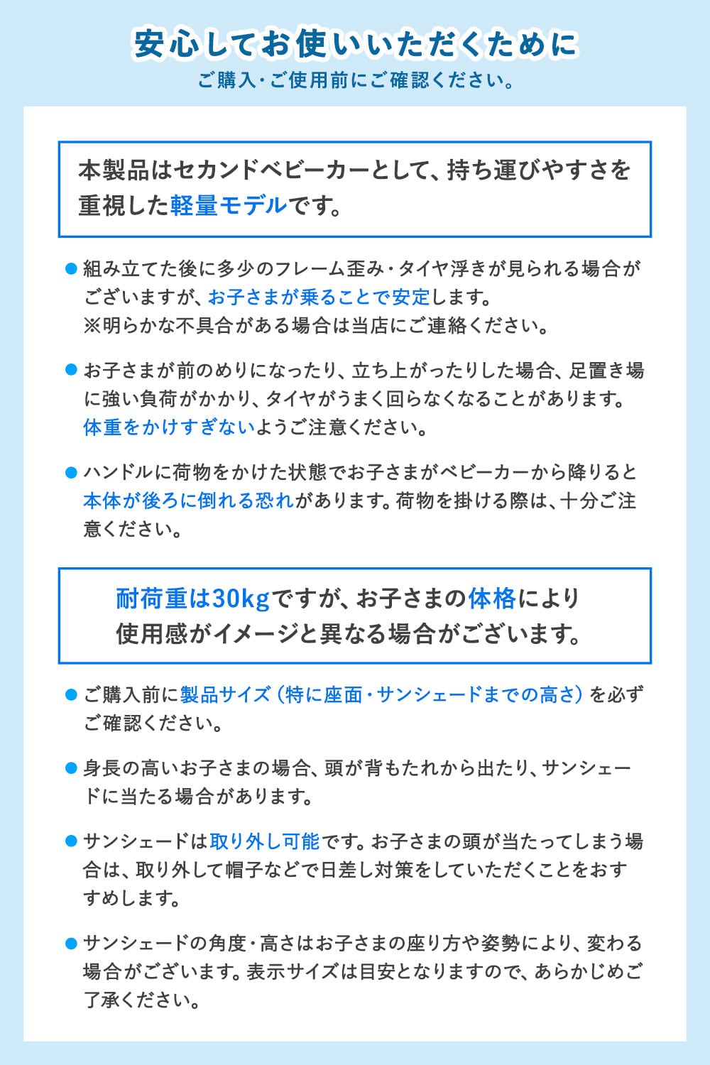 耐荷重は30kgですが、お子さまの体格により使用感がイメージと異なる場合がございます。