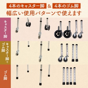 ・4本のキャスター脚と4本のゴム脚で幅広いパターンに対応