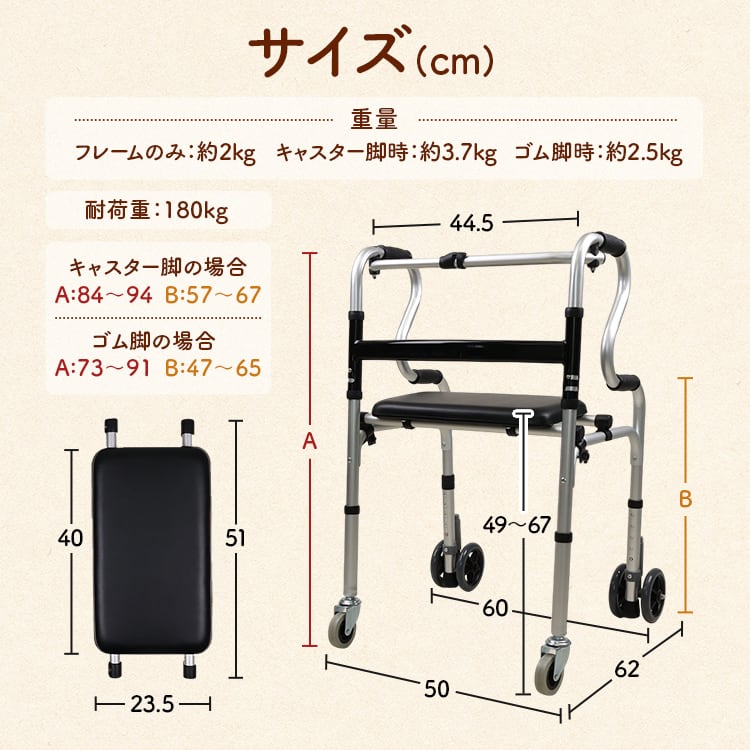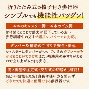 歩行器 折りたたみ式 ダンパー付きキャスター