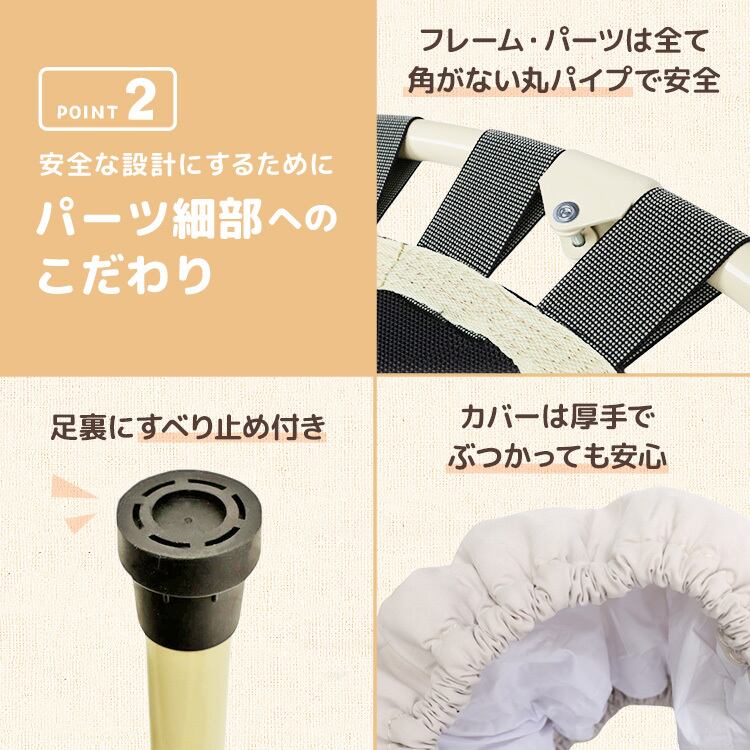 フレームとケーブル部分をすっぽり覆うカバー部分には万が一着地がずれてもカバー部分にはクッションが内包されているので怪我をしにくい安心の構造になっています。